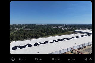 On October 14, 2025, at 7:18 AM, Musk tweeted “Logo complete” with an aerial photo showing “MACROHARD” painted across the roof of xAI’s massive Colossus…