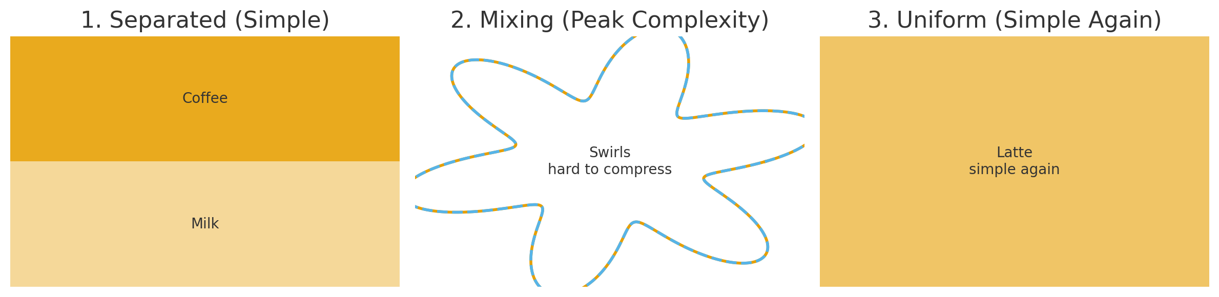 Coffee + milk: Clean split → Beautiful swirls → Boring brown.