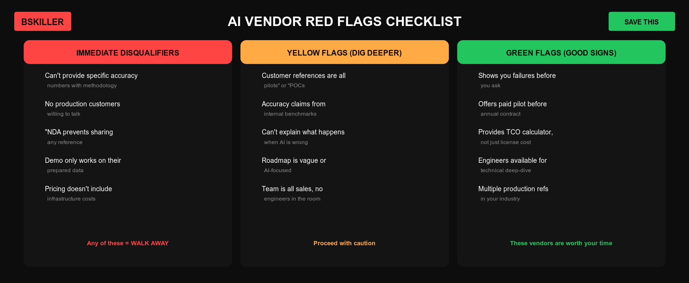 Save this. Screenshot it. Use it in every AI vendor evaluation.