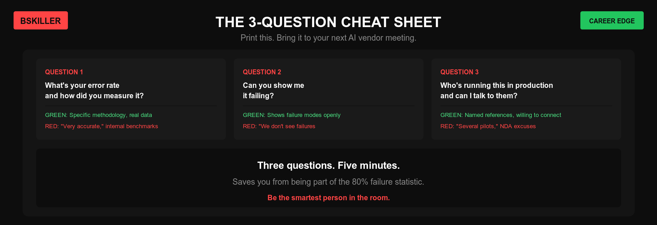 Print this. Bring it to your next AI vendor meeting.