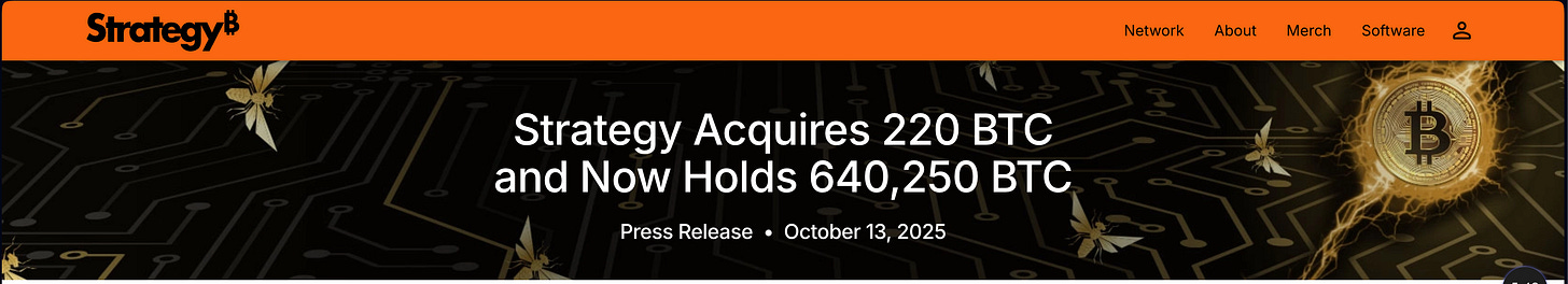 640,250 BTC holdings (Oct 13, 2025): press release